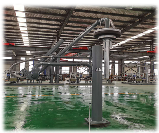 鶴管主要由固定、回轉(zhuǎn)、操作、平衡等機(jī)構(gòu)和油管組成。其中回轉(zhuǎn)機(jī)構(gòu)(回轉(zhuǎn)接頭)是用鍛鋼或鋁合金精心制造,內(nèi)裝復(fù)列球軸承,不銹鋼特殊密封圈,它旋轉(zhuǎn)靈活、密封性能可靠、經(jīng)久耐用。平衡系統(tǒng)有配重、扭簧、壓簧、拉簧和絲杠以及液壓和氣動(dòng)平衡等型式,均能以很小的力進(jìn)行操作。